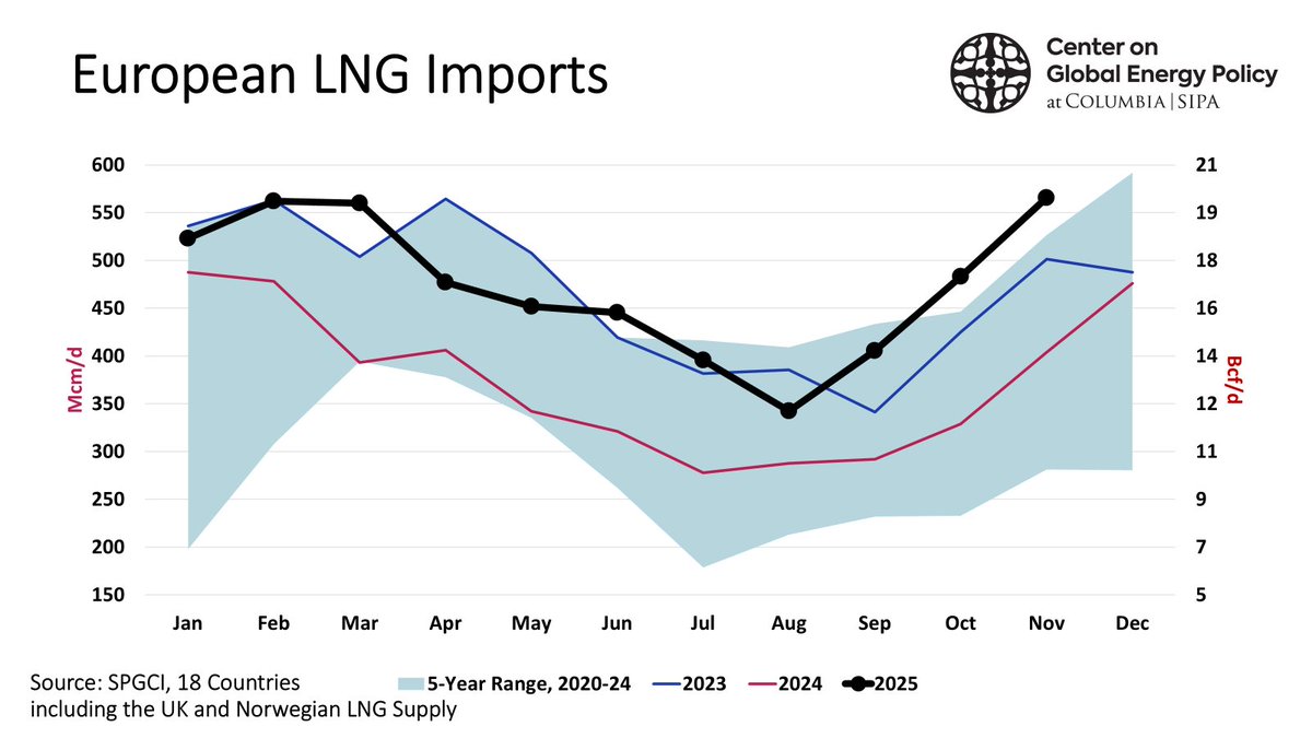 Europe is attempting to wean itself off Russian LNG ahead of a total ban on LNG imports on January 1, 2027 that is part of the nineteenth sanctions package.