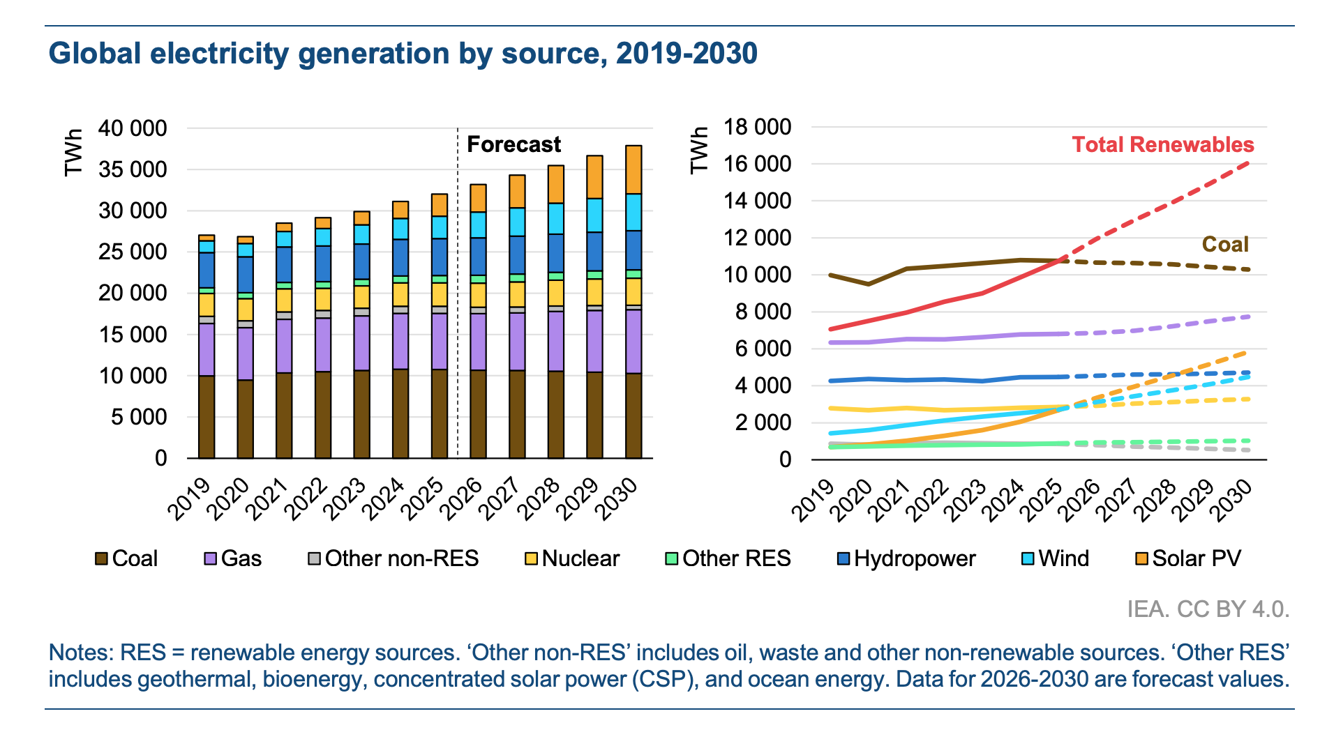 The “Age of Electricity” is here and half the world’s power will be generated by renewables and nuclear power plants (NPPs) by 2030, the IES says in its latest “Electricity 2026” report.
