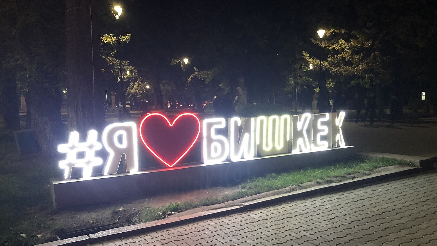 "I love Bishkek", reads a sign unlikely to survive the 10pm stricture (Credit: Davide Mauro, cc-by-sa 4.0).