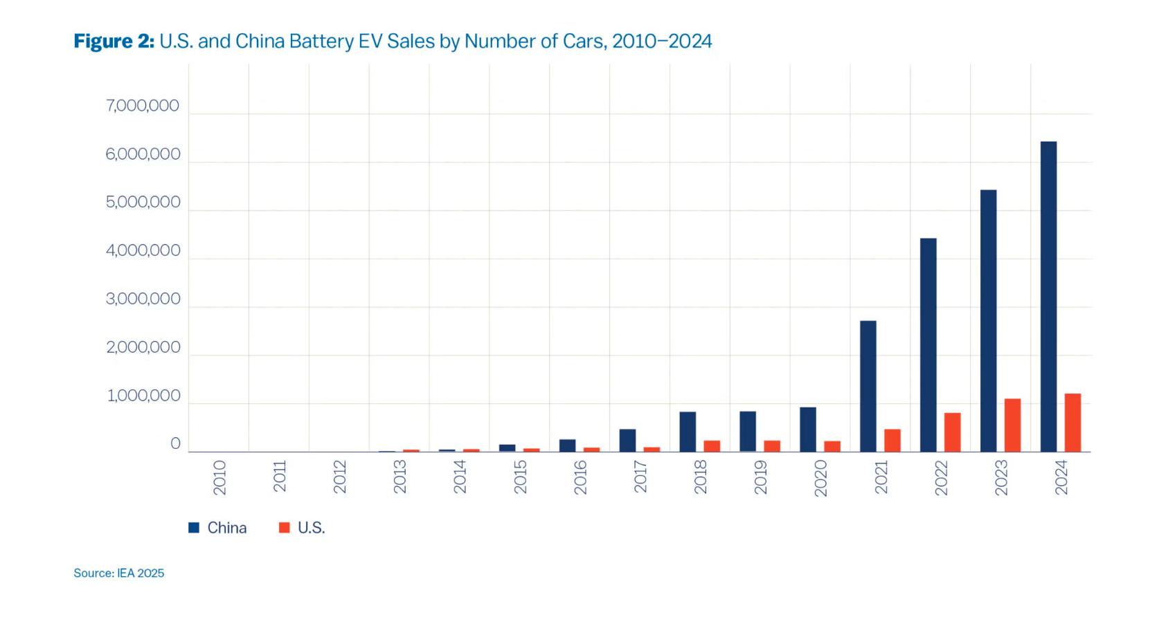 Most of the progress has been driven by China, which has invested heavily in developing battery technology and is also home to most of the processing of the critical minerals and rare earth metals (REMs) needed to make batteries, most obvious in the explosion of EV sales in the last few years: China sold 433% more EVs in 2024 than the US and is now the largest car maker in the world, with electric vehicles account for half of all sales in 2025. China now dominates the lithium-ion (Li-ion) battery production and is now exploring the far more common sodium-based battery technology. Lithium-ion batteries, and electric vehicles themselves, require critical minerals like lithium, cobalt, nickel, copper, graphite, and assorted REMs.