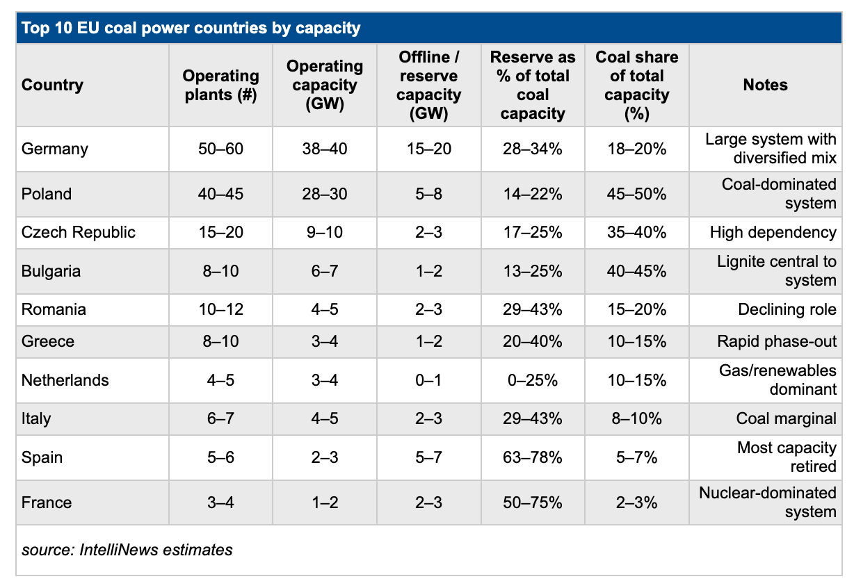 In Europe some of the biggest economies still make heavy use of coal but also have large reserves of offline coal-fired generating capacity thanks to the green energy transition.